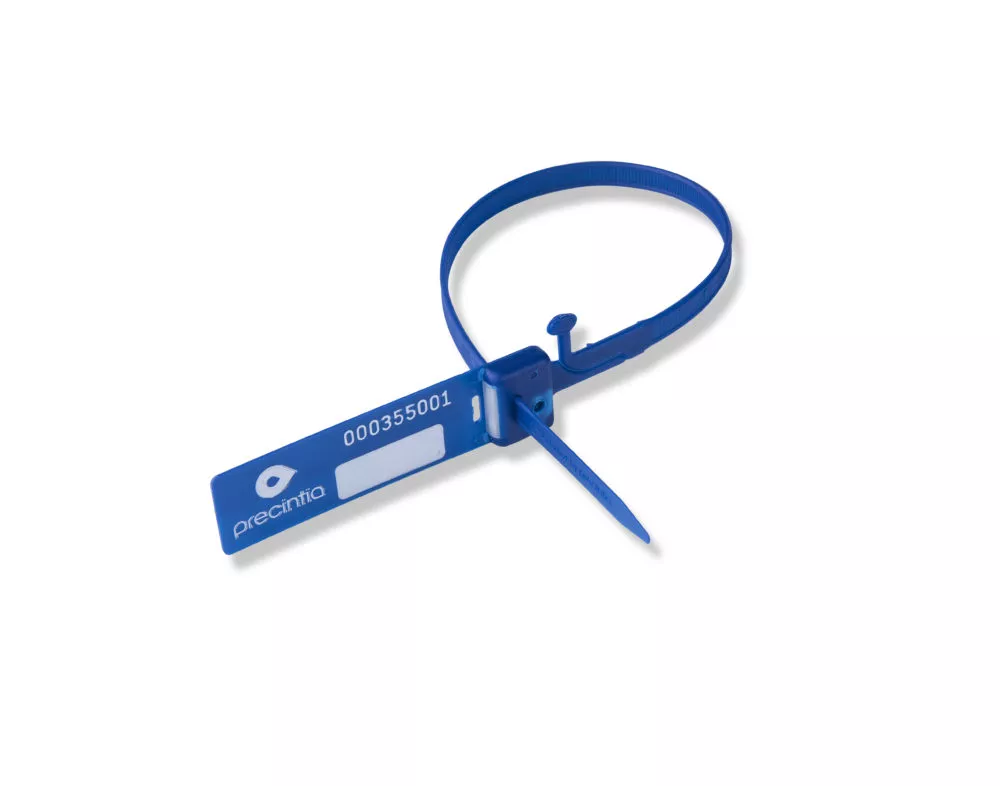 Precinto de seguridad tipo brida ajustable de última generación y de alta seguridad que encapsula el inserto metálico en un cajetín soldado para evitar manipulación.